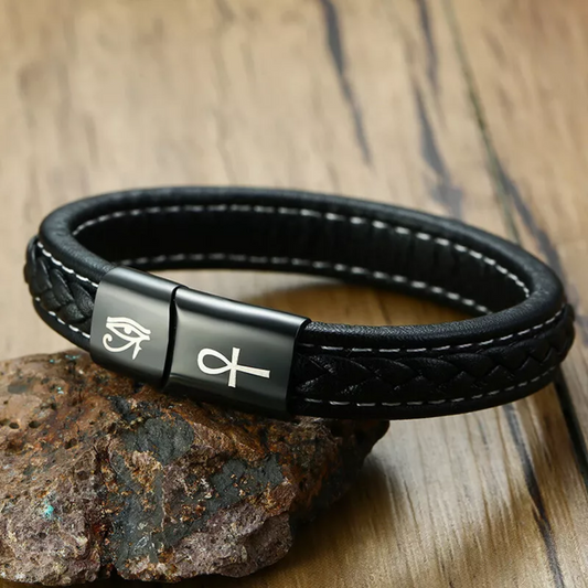 You will easily recognize among our bracelets those inspired by the great symbols and deities of Upper and Lower Egypt (the falcon god Horus, the creator god Ra, the god of evil Set, the wolf god Anubis, the goddess of love Hathor, the goddess of magic Isis, the lion goddess Sekhmet, the cross of life "cross ankh").