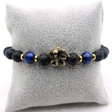 A black stone bracelet adorned with the divine cobra Wadjet. The Uraeus symbol is a particular representation of Wadjet, depicting this cobra in its upright form of hunt.