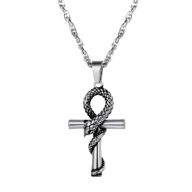 The Egyptian ankh is the symbol of life and hope. The divine giant snake Apep is the symbol of destruction and evil. This necklace "Apep-ankh" is a complete paradox!