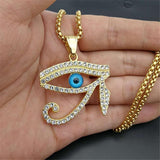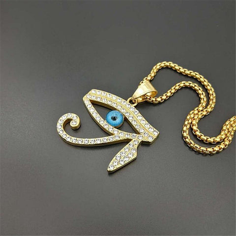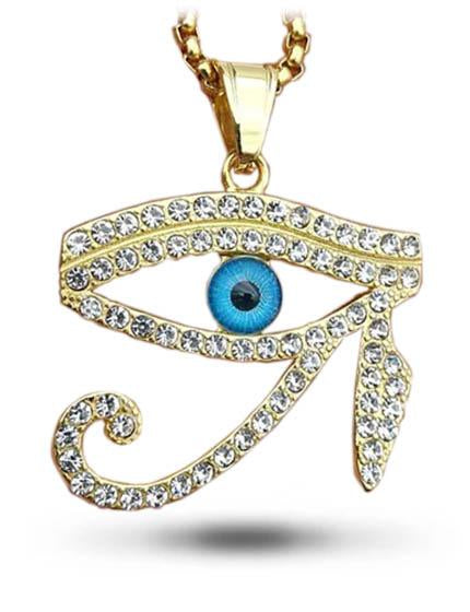 An Egyptian necklace "bling eye of Ra" which represents the eye of the firstborn of the large Egyptian gods family: the falcon-headed deity Ra.
