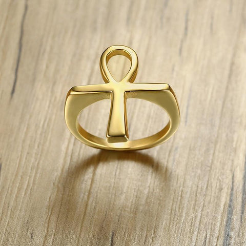 Golden Ankh Ring (Steel)
