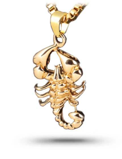 An Egyptian pendant "Scorpion Necklace White Gold" representing an ancient scorpion goddess. Namely, one of the seven indistinguishable scorpion-goddesses: Tefen, Mesetet, Masetetef, Befen, Tjetet, Matet or Petet.