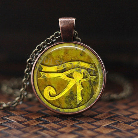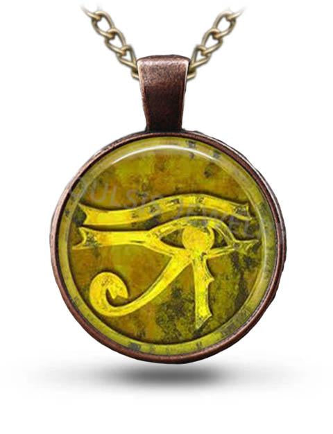 An Egyptian necklace "gold eye of Ra" which refers to the eye of the falcon god Ra.