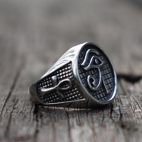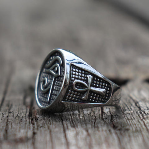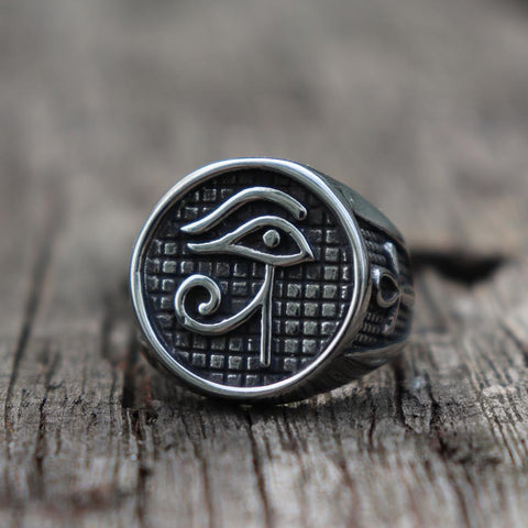 A ring "eye of Ra", the eye of the father of all Egyptian gods, the falcon-headed god Ra, both creator and punisher of humanity in Egyptian mythology.